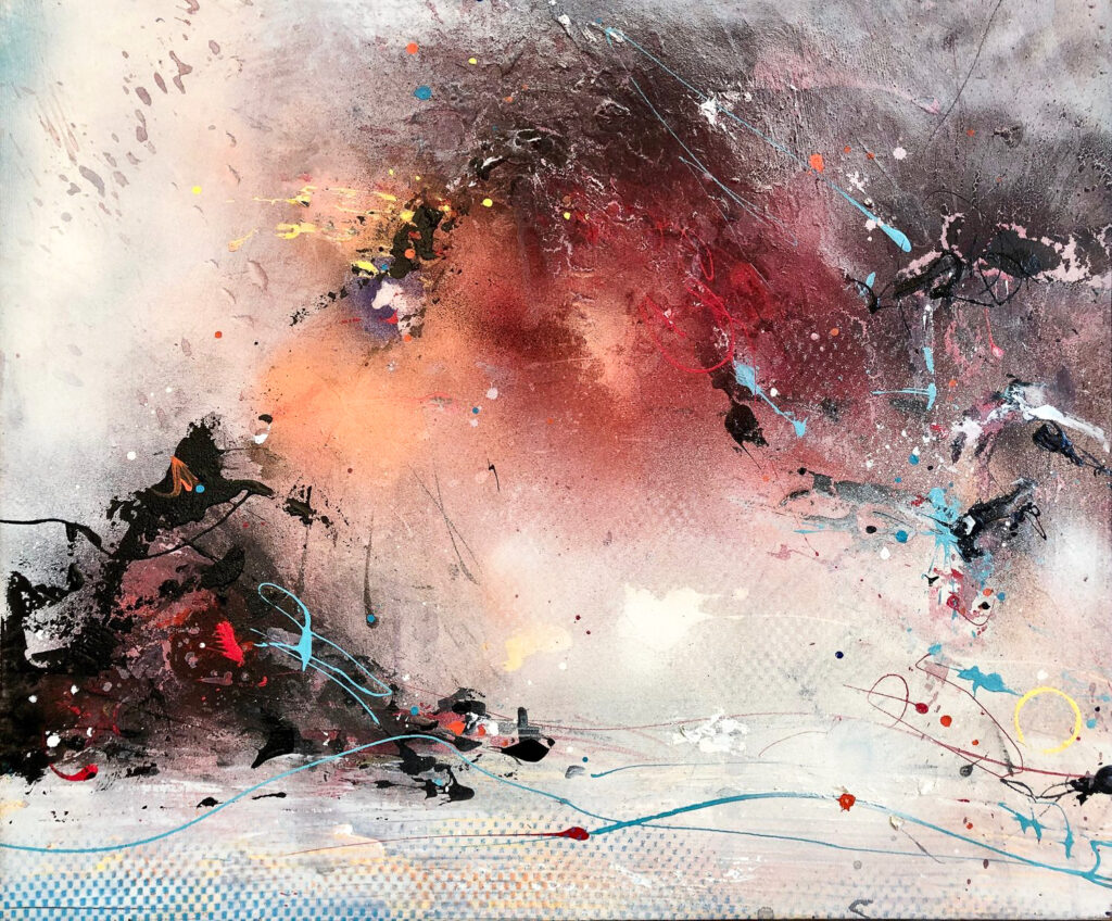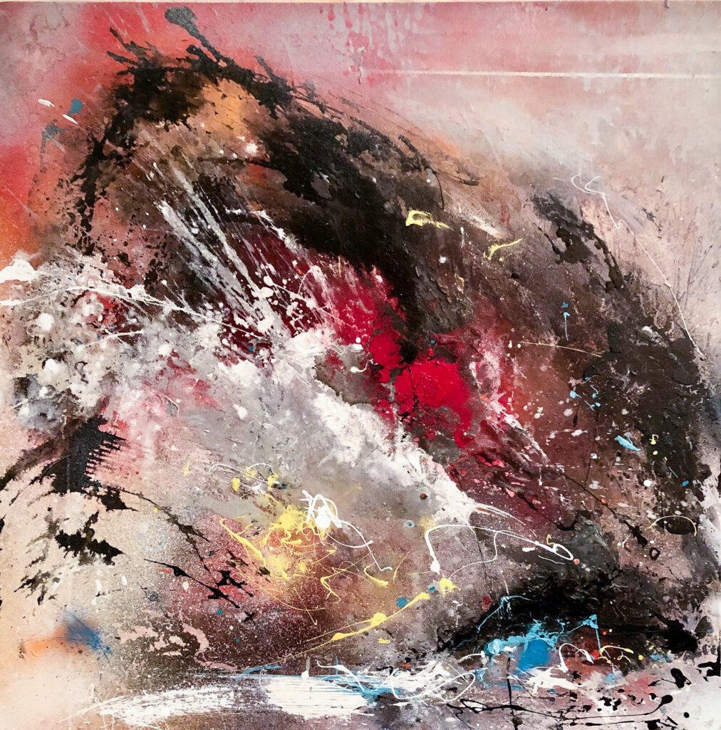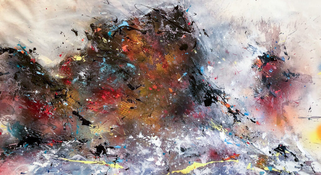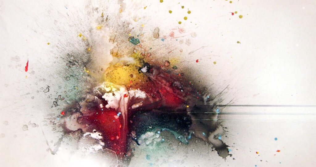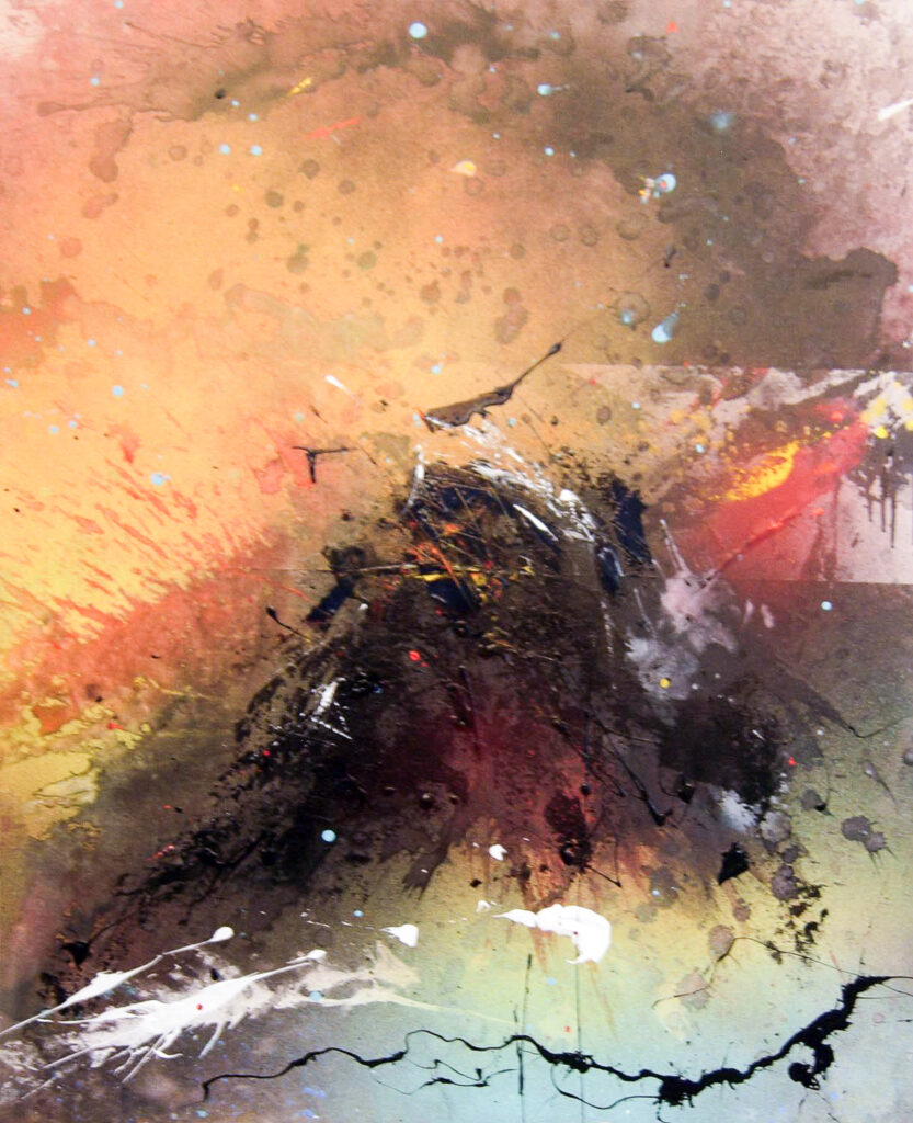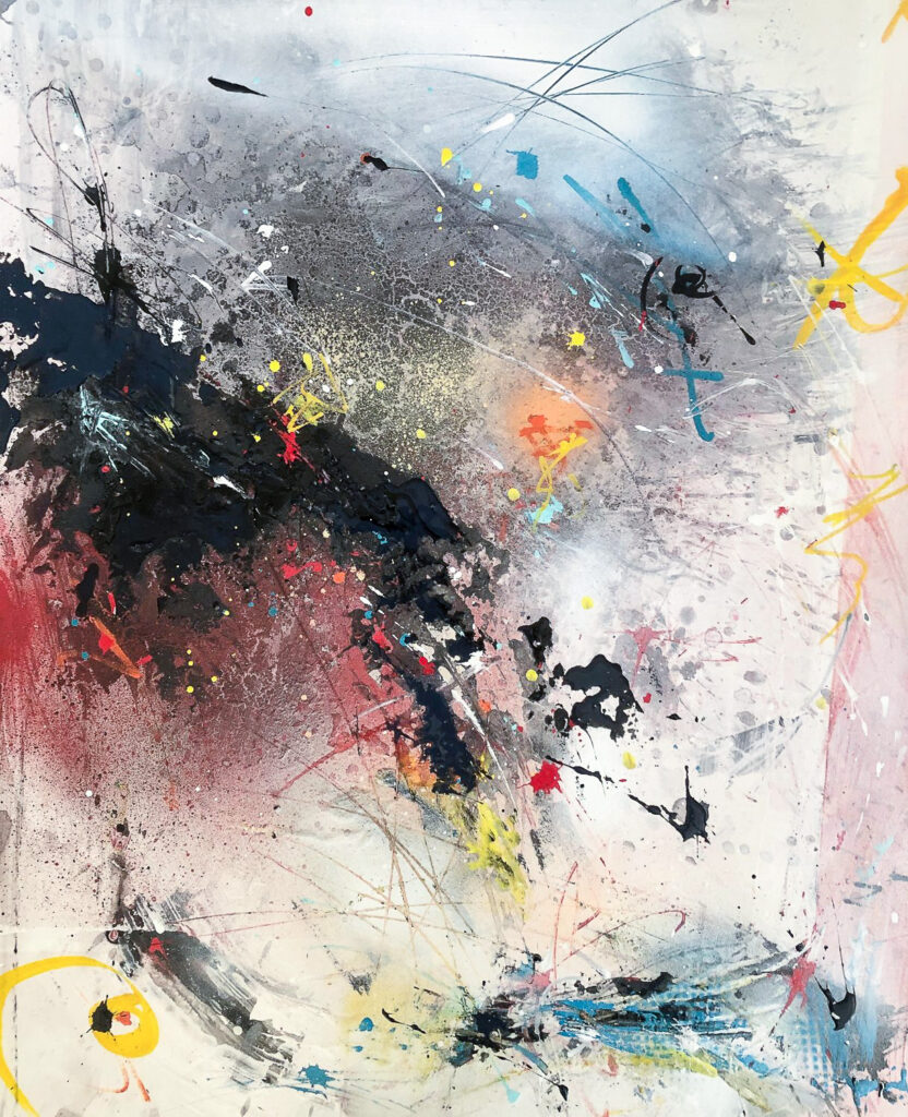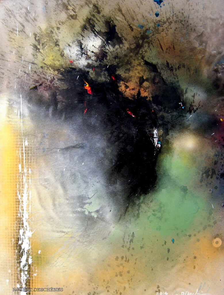 Les tableaux « SANSUI » veulent posséder l’esprit de l’eau et recréent, – par les pulsations sanguines qui motivent ce lien – la vivacité de tous ses mouvements, la manière dont les vagues se heurtent ou se succèdent, dont elles s’incarnent en de multiples formes fantastiques, tantôt agitées, tantôt apaisées. Ils mettent en lumière l’expérience directe et intuitive et communiquent par-delà les mots et les images pour faire ressentir le mouvement de la vie et la force spirituelle contenue dans chaque chose. Ils s’imprègnent de l’odeur et des sons que l’on retrouve le long des cours d’eau, des fleuves et des océans, de la vie en mouvement. Par les vents et les nuages sonder les mutations imprévisibles d’un lieu ; par l’agencement des pics et des falaises déchiffrer le secret caché qui avive le souffle dynamique et maîtriser la forme et l’esprit ; capter la vie qui se forme et s’éveille, s’ouvre, se détourne, s’incline ou se fane; saisir les secrets qui l’animent. Voilà autant de sujets qui m’inspirent. La métaphore fait partie intégrante de la pensée secrète qui les compose. Dans le plus grand abandon, le pinceau suit les mouvements giratoires du sang qui coule dans mes veines.